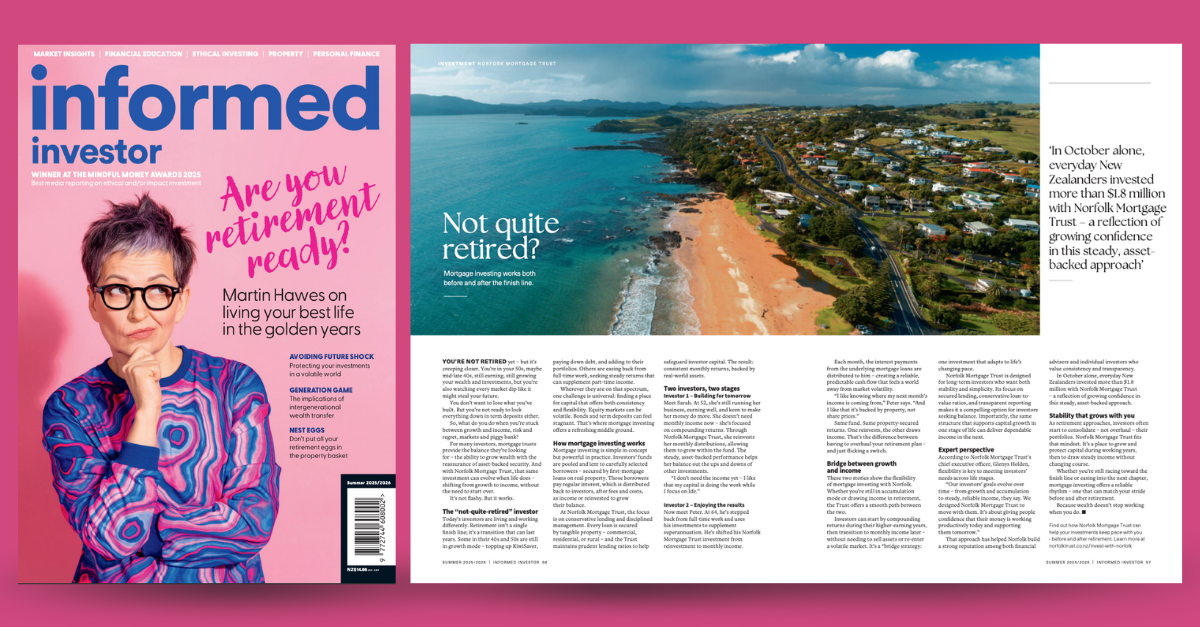 Units in the Norfolk Mortgage Trust are issued by the Trust’s manager, Norfolk Mortgage Management Limited. Download the Product Disclosure Statement (PDS) on our website, visit our office for a hard copy, or email us at invest@norfolktrust.co.nz to request one.